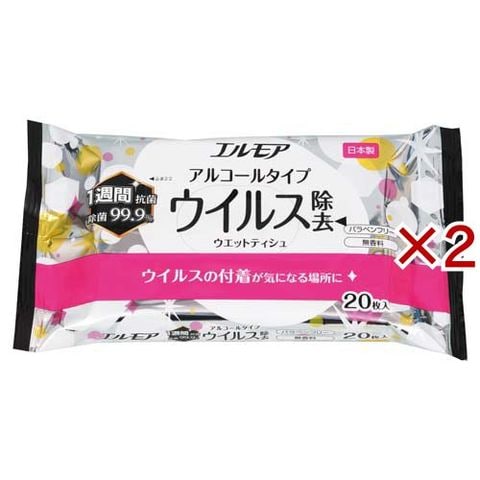 エルモア 除菌99.9% ウイルス除去 ウエットティシュ アルコールタイプ (20枚入×2セット)