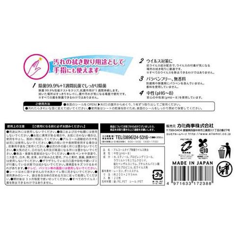 【エルモア 除菌99.9% ウイルス除去 ウエットティシュ アルコールタイプの商品詳細】