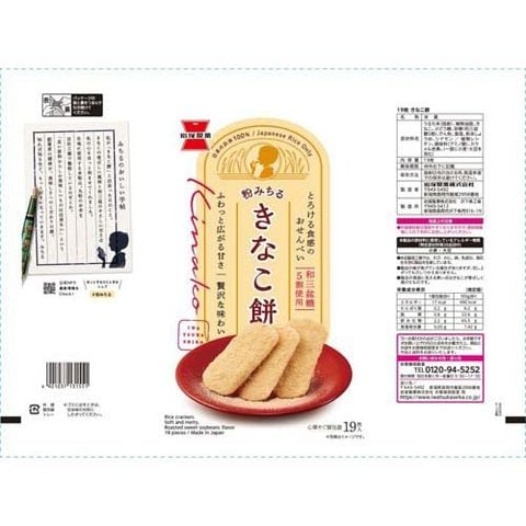 | うるち米(国産)、植物油脂、きなこ、ぶどう糖、砂糖(和三盆糖5割)、でん粉、食塩、粉末しょうゆ、シナモン/植物レシチン、調味料(アミノ酸)、カラメル色素、(一部に小麦・大豆を含む) |