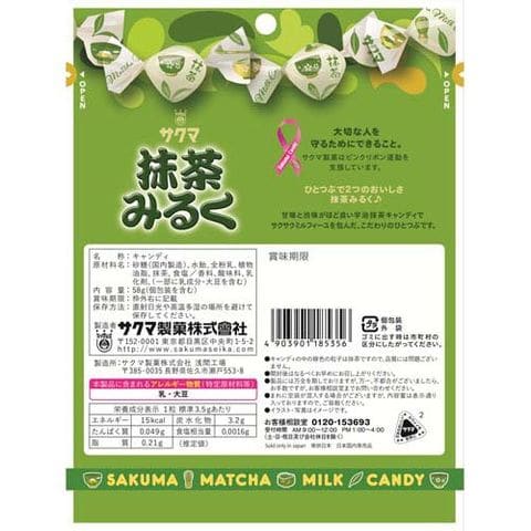| 砂糖(国内製造)、水飴、全粉乳、植物油脂、抹茶、食塩/香料、酸味料、乳化剤、(一部に乳成分・大豆を含む) |