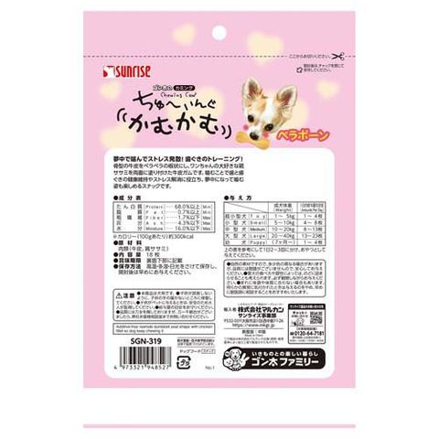 ●噛むことで歯と歯ぐきの健康維持やストレス解消に役立ち、夢中になって噛む姿も楽しめるスナックです。