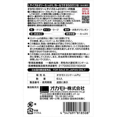 【オカモトゼロツー Lサイズたっぷりゼリーの商品詳細】