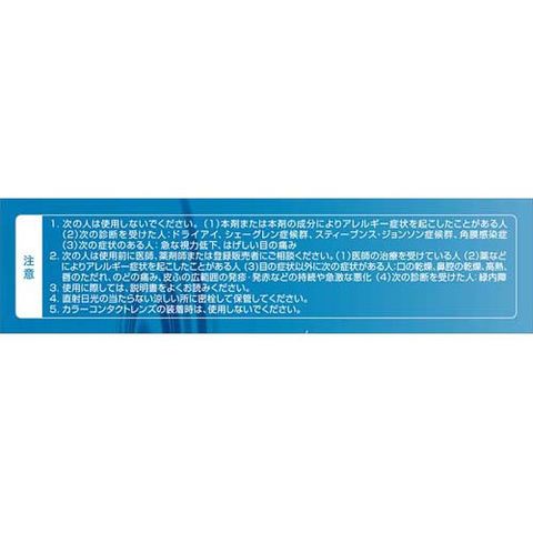 | 目の次の症状の緩和:乾き、異物感(コロコロ・チクチクする感じ)、疲れ、かすみ、ソフトコンタクトレンズまたはハードコンタクトレンズを装着しているときの不快感 |