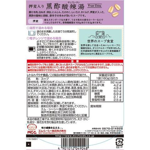 【MCC 世界のスープ食堂 押麦入り黒酢酸辣湯の商品詳細】
