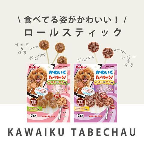 ●鉄分豊富な鶏レバーと良質たん白質豊富なタラをぐるぐる巻いてかわいいキャンディ形状に仕上げました。素材の味が楽しめて芯までおいしく食べられる。