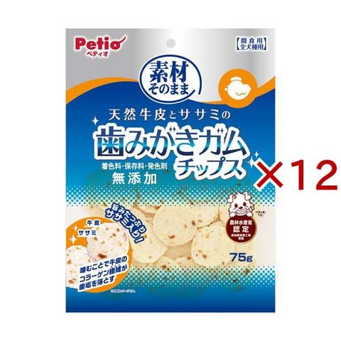 素材そのまま 天然牛皮とササミの歯みがきガム チップス (75g×12セット)