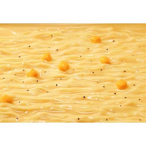 | 油揚げめん(小麦粉(国内製造)、植物油脂、精製ラード、でん粉、食塩、植物性たん白、砂糖、しょうゆ、チキンエキス、卵白)、添付調味料(乳等を主要原料とする食品、豚脂、砂糖、粉末野菜、食塩、チキンエキス、香辛料、乳糖、たん白加水分解物)、かやく(チーズ加工品)/加工でん粉、調味料(アミノ酸等)、増粘多糖類、炭酸カルシウム、かんすい、クチナシ色素、カラメル色素、酸化防止剤(ビタミンE)、香料、ビタミンB2、ビタミンB1、パプリカ色素、(一部にえび・小麦・卵・乳成分・大豆・鶏肉・豚肉・ゼラチンを含む) |
