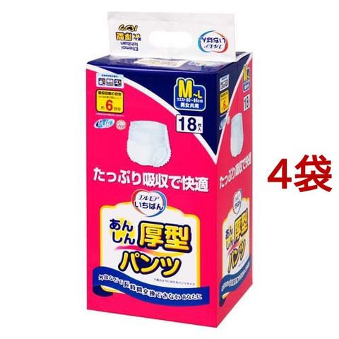 エルモアいちばんあんしん厚型パンツM-L 男女共用 6回吸収 (18枚入*4袋セット)