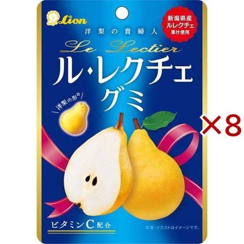 | 水飴(国内製造)、砂糖、ゼラチン、でんぷん、西洋なし果汁/ソルビトール、酸味料、粉末セルロース、マンニトール、ビタミンC、ゲル化剤(ペクチン)、光沢剤、香料、乳化剤、ベニバナ黄色素、(一部にゼラチンを含む) |