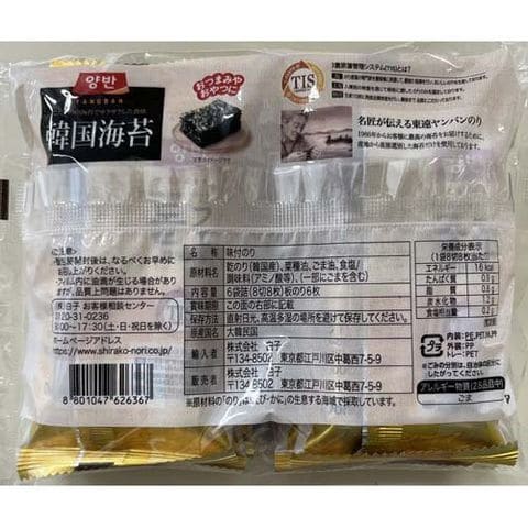 乾のり(韓国産)、菜種油、ごま油、食塩/調味料(アミノ酸等)、(一部にごまを含む)