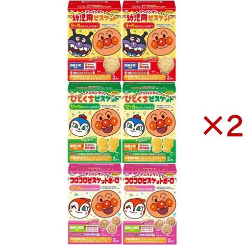 | ・アンパンマン幼児用ビスケット/84g×2個 ・アンパンマンひとくちビスケット/72g×2個 ・アンパンマンコロコロビスケットボーロ/50g×2個 計3種6個 |