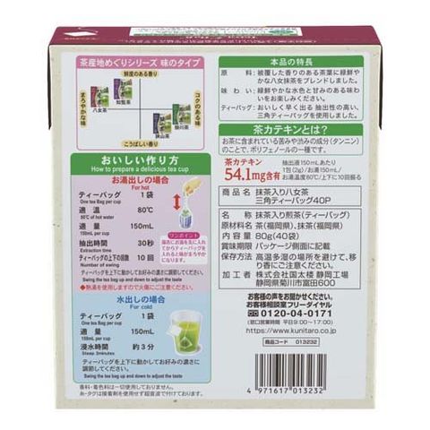 ●茶カテキン54.1mg含有(抽出液150mlあたり/1包(2g)/お湯150ml/お湯温度80度/上下に10回振る)