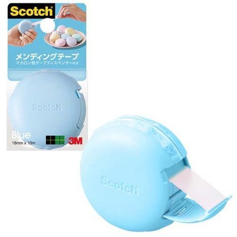 スコッチ メンディングテープ マカロン型テープディスペンサー付き 810 ブルー MCR-BL (3セット)