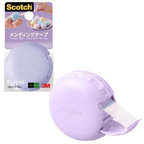 スコッチ メンディングテープ マカロン型テープディスペンサー付き 810 紫 MCR-PP (3セット)