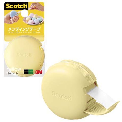 【スコッチ メンディングテープ マカロン型テープディスペンサー付き 810 黄色 MCR-YLの商品詳細】