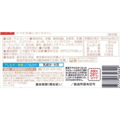 | 砂糖、植物油脂、全粉乳、乳糖、カカオマス、ココアバター、まっ茶、クリーミングパウダー、脱脂粉乳/トレハロース、乳化剤、香料、着色料(クチナシ、フラボノイド)、(一部に乳成分・大豆を含む) |