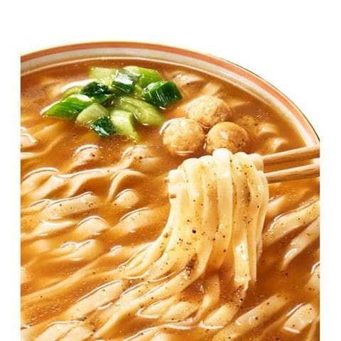 | 1食(86g)当たり エネルギー:347kcal(めん・かやく:316kcal、スープ:31kcal)、たんぱく質:8.3g、脂質:15.7g、炭水化物:43.2g、食塩相当量:4.7g(めん・かやく:1.4g、スープ:3.3g)、ビタミンB1:0.27mg、ビタミンB2:0.31mg、カルシウム:189mg |