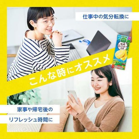●宮崎県産の甘味と酸味のバランスがよい月夜実と、ほんのりとした甘味と爽やかな酸味の日向夏の味わいに仕上げた野菜&果実100%ジュースです。