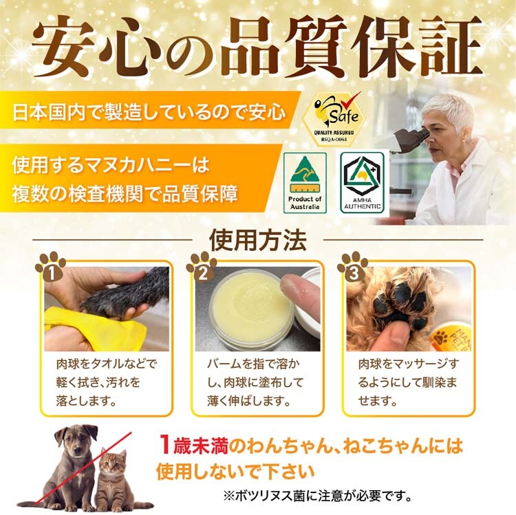 ●マヌカハニー専門店がペットの為に考えたマヌカハニーMGO550+を使用した肉球バーム。