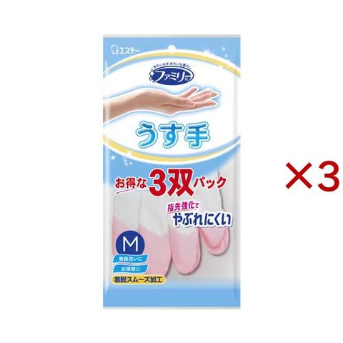 ファミリー 家庭用手袋 ビニール 手袋 うす手 指先強化 M 3双パック 掃除 洗濯 用 (3セット)