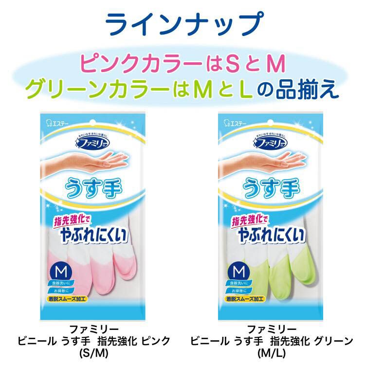 【ファミリー 家庭用手袋 ビニール 手袋 うす手 指先強化 M 3双パック 掃除 洗濯 用の商品詳細】