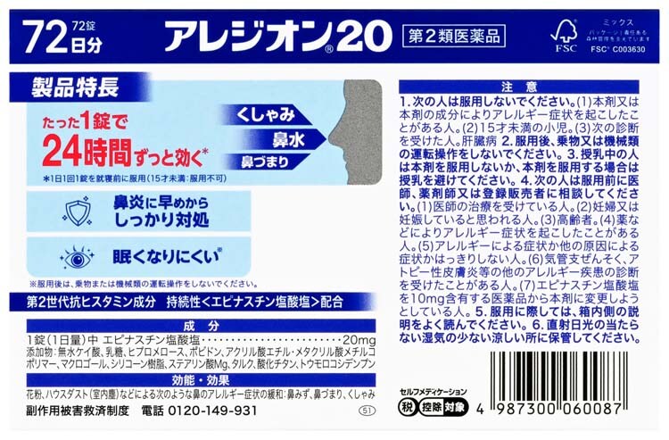 【第2類医薬品】アレジオン20 (72錠×3セット(セルフメディケーション税制対象))