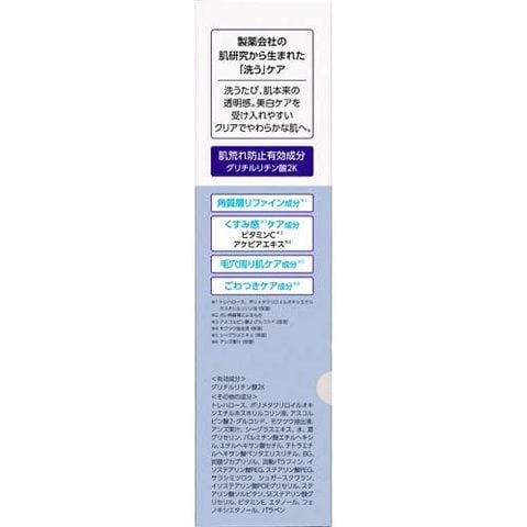 ●トランシーノ「洗うケア」共通成分の、肌荒れ防止成分(グリチルリチン酸2K)、くすみ感ケア※成分(保湿:ビタミンC・アケビアエキス)を配合。※保湿しながら洗浄すること