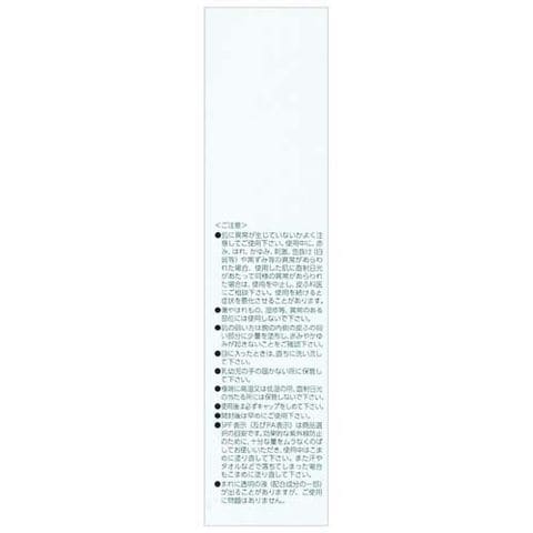 ・SPF表示(及びPA表示)は商品選択の目安です。効果的な紫外線防止のために、十分な量をムラなくのばしてお使い頂き、使用中はこまめに塗り直して下さい。また汗やタオルなどで落ちてしまった場合もこまめに塗り直して下さい。