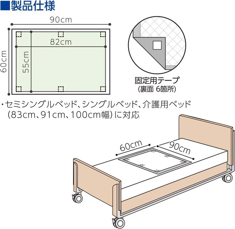 ● 裏面防水シート付きのため、汚れを下に通さず、ベッドが汚れるのを防ぎます。