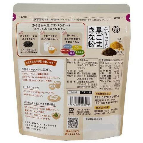 | 黒いりごま(国内製造)、きなこ(大豆(国産))、セサミン |