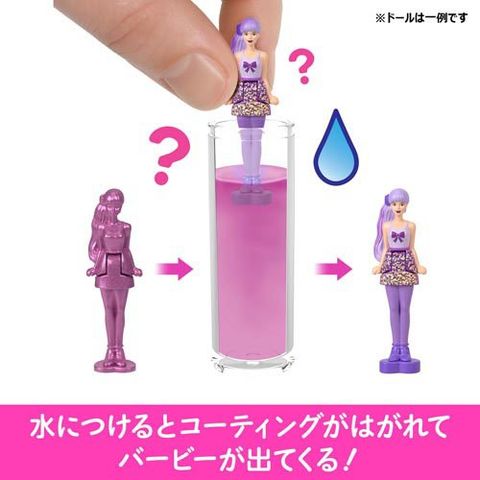 ●バービーのカラーリビールシリーズをモデルに作られたマイクロドールは全部で6種類、水に入れてコーティングをはがすまで、何が出てくるかわからないサプライズトイ!
