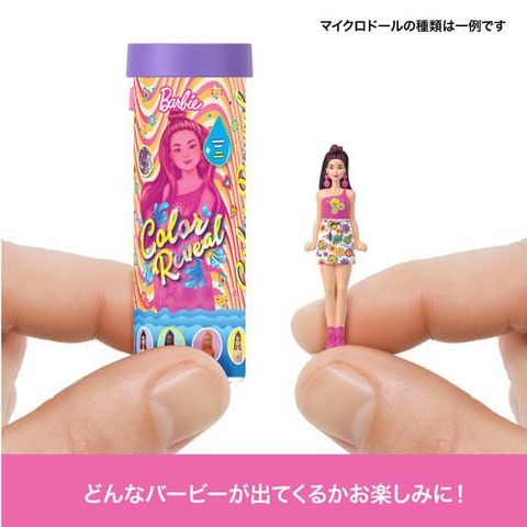 ●バービーのカラーリビールシリーズをモデルに作られたマイクロドールは全部で6種類、水に入れてコーティングをはがすまで、何が出てくるかわからないサプライズトイ!