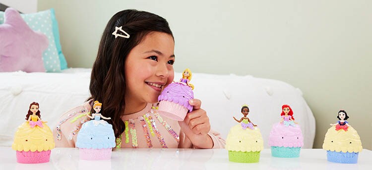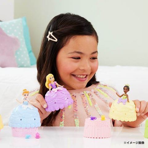 ●どのプリンセスがでてくるかは開けてみるまでのお楽しみ。カップケーキを開けると、プリンセスのミニドールとアクセサリーが!