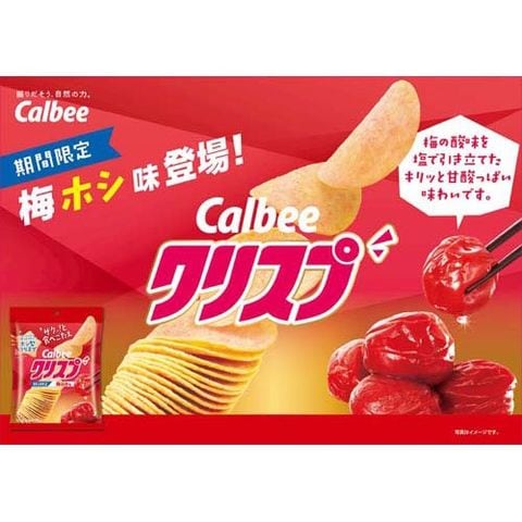 | 乾燥じゃがいも(外国製造)、植物油、食塩、でん粉、砂糖、梅肉パウダー、たん白加水分解物(大豆を含む)、かつおぶしエキスパウダー(さばを含む) / 乳化剤、調味料(アミノ酸等)、酸味料、香料(ゼラチン由来)、ベニコウジ色素、甘味料(ステビア) |