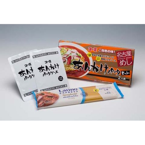 ●デュラム小麦のセモリナを原料とした、弾力のあるコシの強さが特長の2.2mm太麺スパゲッティと、野菜・肉エキスのコクとうま味、焙煎黒胡椒と挽き方を変えた2種の黒胡椒が織りなす深い香りのピリッとスパイシーなあんかけパスタソースがセットになった、ご当地グルメ(名古屋めし)セットです。