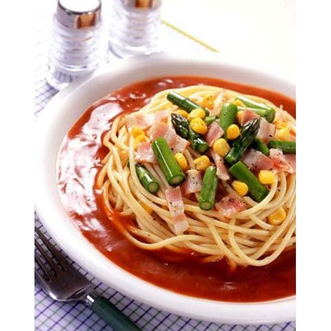 | ★あんかけパスタソース 1袋(120g)当たり エネルギー:88kcal、たんぱく質:10.6g、脂質:1.7g、炭水化物:7.7g、食塩相当量:3.4g ★スパゲッティ 100g当たり エネルギー:360kcal、たんぱく質:12g、脂質:1.5g、炭水化物:74g、食塩相当量:0g |
