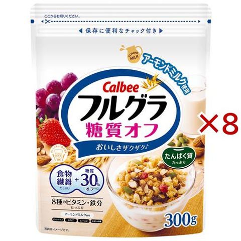 ●穀物とフルーツの味わいと食感を生かし、アーモンドやアーモンドミルクの味わいで、糖質オフとフルグラの飽きのこないおいしさを実現しました。