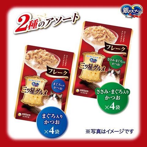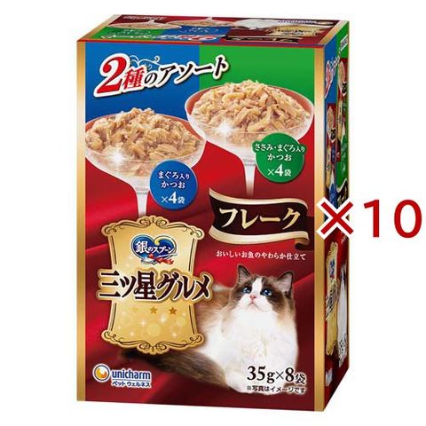 三ツ星グルメ パウチ フレーク まぐろ入りかつお&ささみ・まぐろ入りかつお (8袋入×10セット(1袋35g))