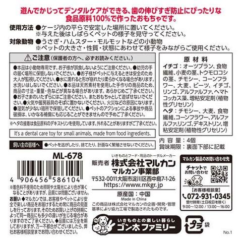 ●遊んでかじってデンタルケアができる、歯の伸びすぎ防止にぴったりな食品原料で作ったおもちゃです。