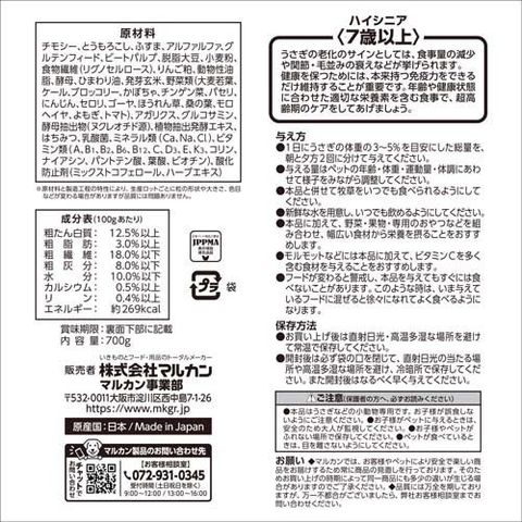 ●7歳以上の超高齢期うさぎの健康維持に配慮しています。