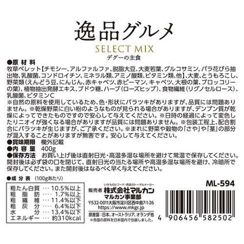 ●糖質分解能力の低いデグーのために、フルーツ不使用で仕上げました。