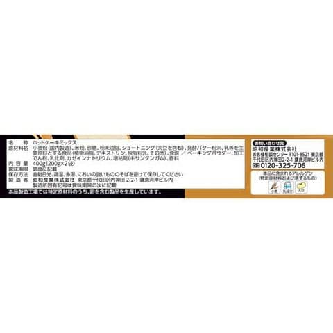 | 小麦粉(国内製造)、米粉、砂糖、粉末油脂、ショートニング(大豆を含む)、発酵バター粉末、乳等を主要原料とする食品(植物油脂、デキストリン、脱脂粉乳、その他)、食塩 / ベーキングパウダー、加工でん粉、乳化剤、カゼインナトリウム、増粘剤(キサンタンガム)、香料 |