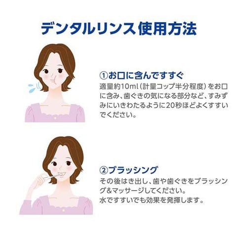 ・適量約10mlをお口に含み、20秒ほどすすぎ、吐き出した後、ブラッシングする。