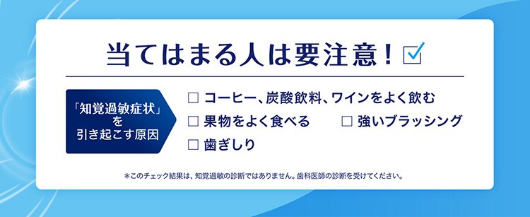 ・ムシ歯にともなう歯の痛みには効果がありません。ムシ歯でしみる場合は、歯科医師による治療を受けてください。