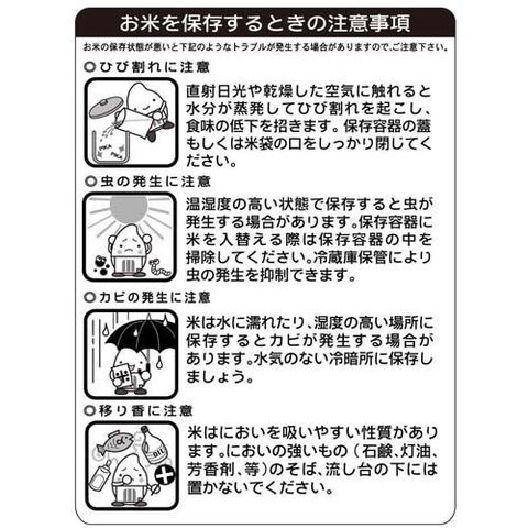 ・温湿度が高い状態で保管をすると虫が発生する場合がございます。保存容器に米を入れ替える際は、保存容器の中を清掃してください。冷蔵保管により、虫の発生を抑制できます。