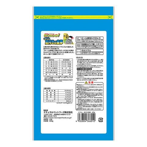 | キビ(皮付き)、アワ(皮付き)、ヒエ(皮付き)、カナリアシード(皮付き)、アワ(皮むき)、赤アワ・赤キビ(皮付き)、ボレー粉※アワ(皮むき)には、リンゴ・小松菜・ビール酵母・クロレラ、ハチミツ・乳酸菌(フェカリス菌)・オリゴ糖・カルシウムが添加してあります。 |
