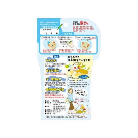 (3)虫よけはリード・ハーネスの金具につけるだけです。使用期間は約70日間です。(風向き、使用環境により、十分な効果が得られない場合があります。)