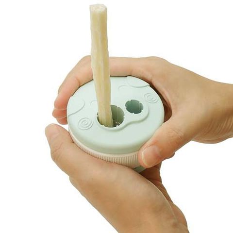 ●デンタルガムを穴に入れ上下フタを回すだけでしっかり固定、本品を愛犬が手で押さえガムをゆっくり長く噛みやすくなります。