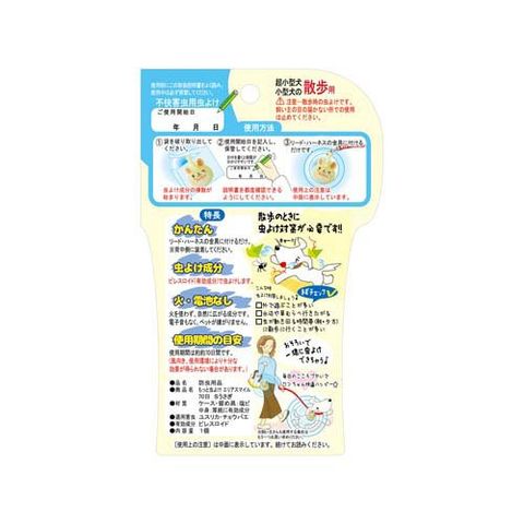 (3)虫よけはリード・ハーネスの金具につけるだけです。使用期間は約70日間です。(風向き、使用環境により、十分な効果が得られない場合があります。)