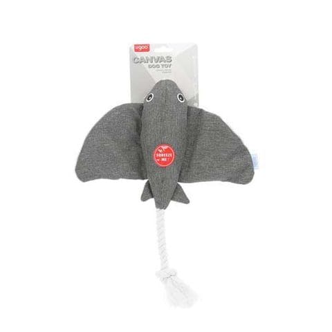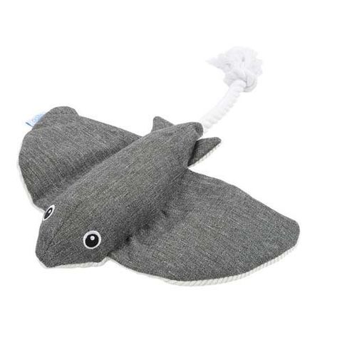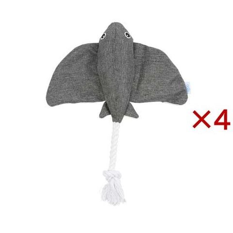 ●カシャカシャ鳴る素材でできた大きなヒレを持つエイ型ぬいぐるみです。胴体に小さなスクイーカーが入っています。